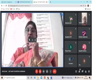 The Department of Accounting and Finance conducted a webinar on “GST AND ITS METRICS” On January 20th, 2022. The webinar was open to all the students and approximately 85 students were participated in the webinar. The Resource person Dr. T. S. Ravi MBA,MCS,M.Phil, Ph.D,Adjunct faculty, Department of Business Administration, RKM Vivekananda College (Autonomous), Mylapore was the key speaker for the event. He spoke about GST basics and the valuation of supply under GST.